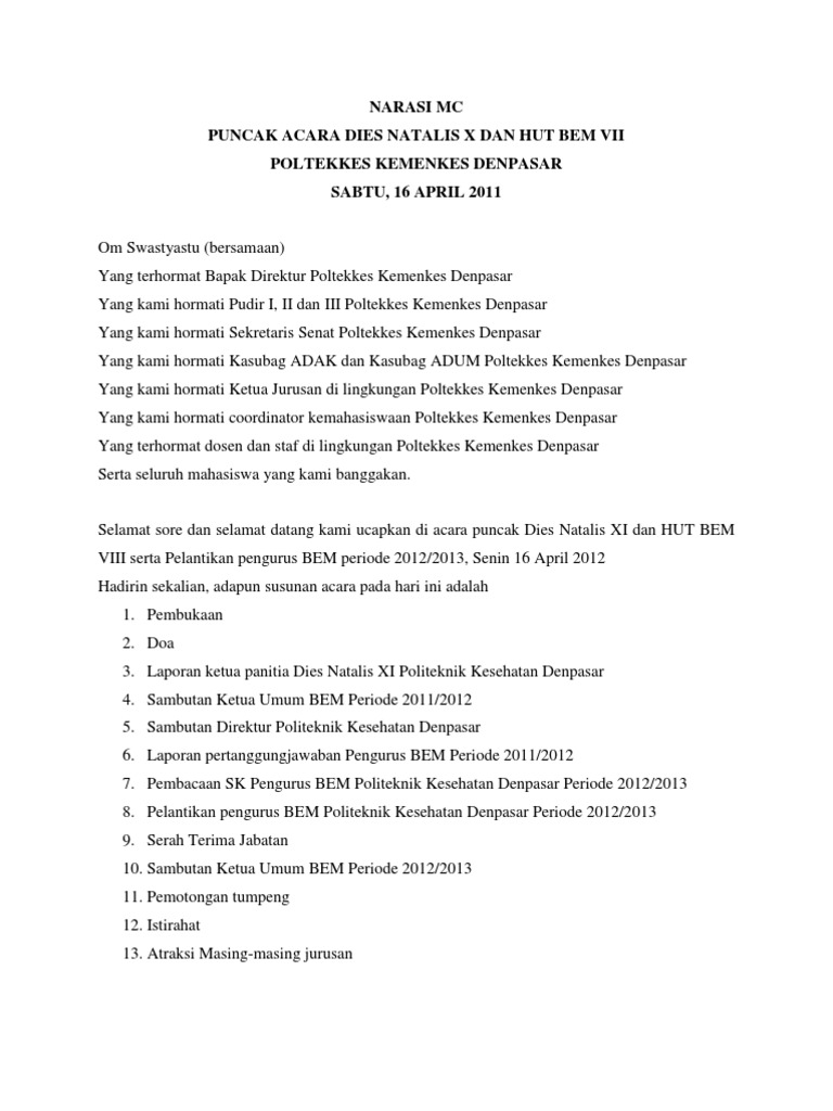 Contoh proposal dan susunan acara. Kata sambutan natal untuk mc berita terbaru hari ini. Untuk contoh teks pembawa acara pernikahan tersebut bisa anda lihat di tags khusus yang bisa anda lihat di link berikut. 33%(6)33% found this document useful (6 votes). 8 downloads 126 views 12kb size. Cara menjadi pembawa acara mc yang baik komunikasi praktis. Contoh teks mc upacara bendera di sekolah. Скачать бесплатно mp3 contoh mc non formal acara ulang tahun feat ardila putri cantika. Sdr(i) yang terkasih dalam tuhan. Contoh naskahteks sambutan sebagai pembawa acara mc contoh teks pembawa acara menjadi pembawa acara atau mc sebenarnya bukanlah hal yang sulit hanya saja bagi anda yang sebelumnya belum pernah mencobanya mungkin anda masih rada gugup dan kurang inspiratif dalam. Tidak hanya teks nya saja tapi juga susunan acara pernikahannya secara lengkap susunan random acara pernikahan modern berbahasa indonesia. Adapun beberapa contoh yang akan penulis berikan untuk sobat semua antara penutupan. Temukan contoh mc yang anda cari di sini !